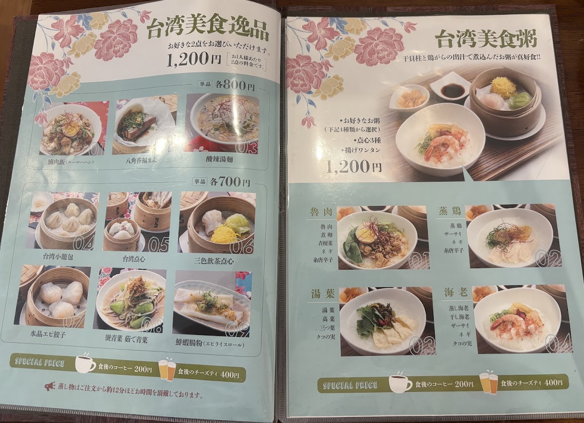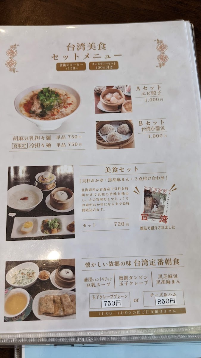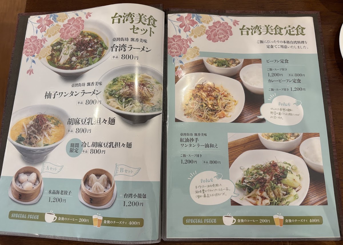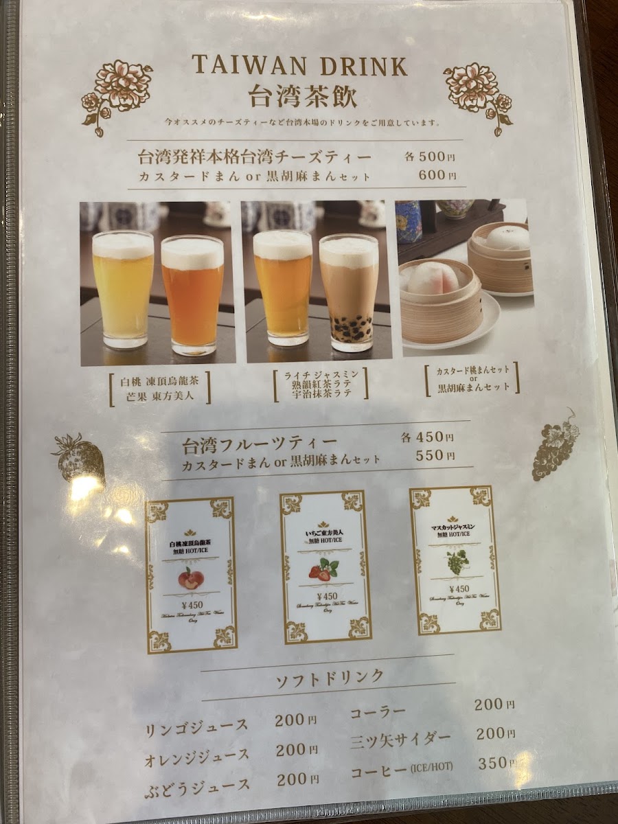 But the offerings don’t stop there; the café also boasts a range of exquisite desserts. Be sure to try the タピオカパンケーキ (Tapioca Pancakes), which come piled high with delicious toppings, making them the perfect sweet ending to your meal. And if you're a fan of beverages, the selection of 台湾チーズティー (Taiwanese Cheese Tea) is a delightful choice, especially when paired with their lunch set for a discounted price.